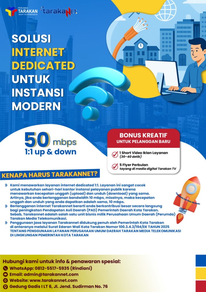 Layanan Internet Broadband adalah solusi hemat untuk kebutuhan internet rumah tangga dan Usaha Kecil Menengah (UKM) di Kota Tarakan dan sekitarnya.